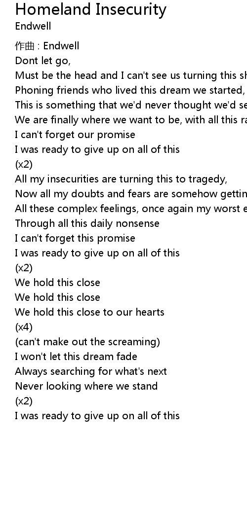 | 歌曲 | Homeland Insecurity |