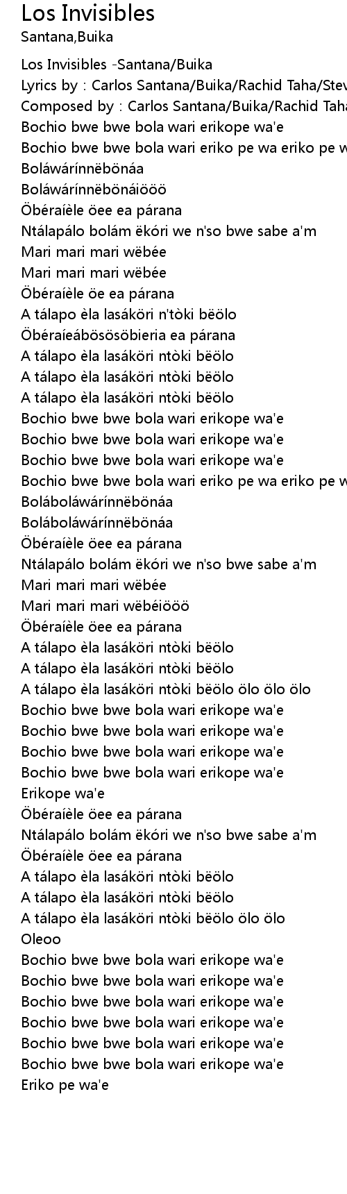 | [00:02.485] | Composed by: Carlos Santana Buika Rachid Taha Steve Hillage |