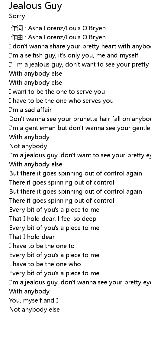 | [00:32.00] | I' m a jealous guy, don' t want to see your pretty eyes |