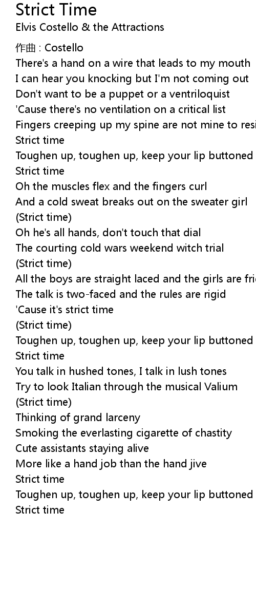 | Toughen up, toughen up, keep your lip buttoned up | |
