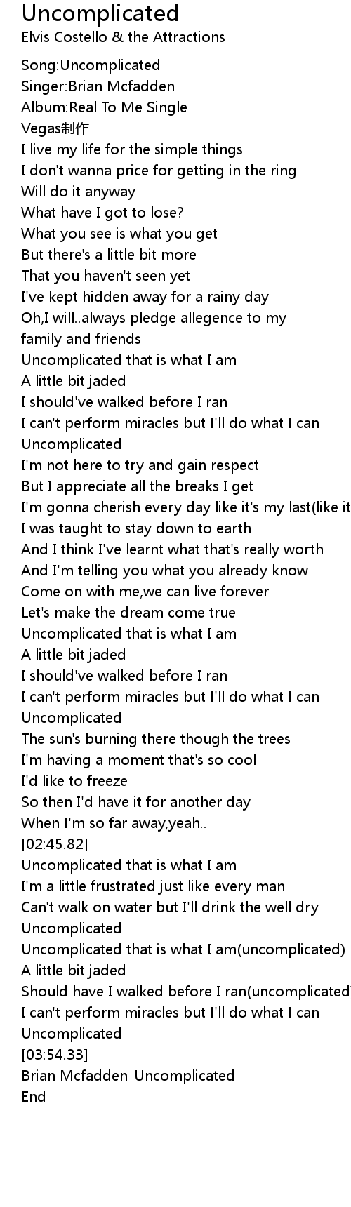 | [00:00.47] | Song: Uncomplicated |