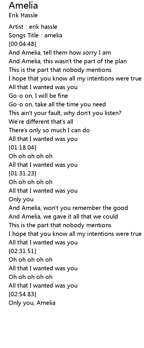 | [00:02.73] | Songs Title: amelia |