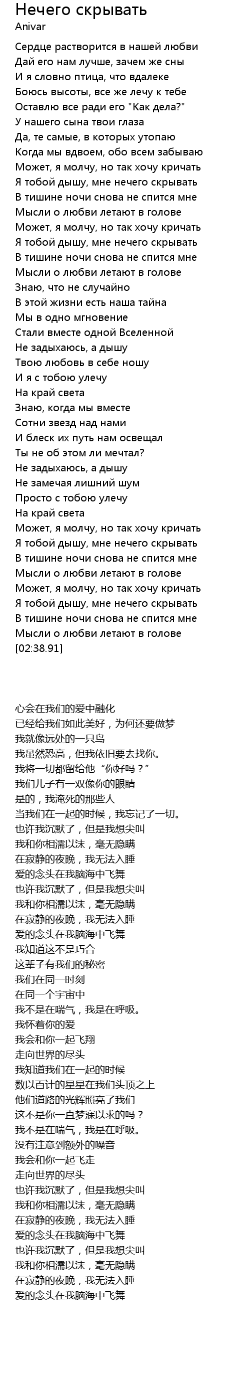 | 歌曲 | Нечего скрывать |