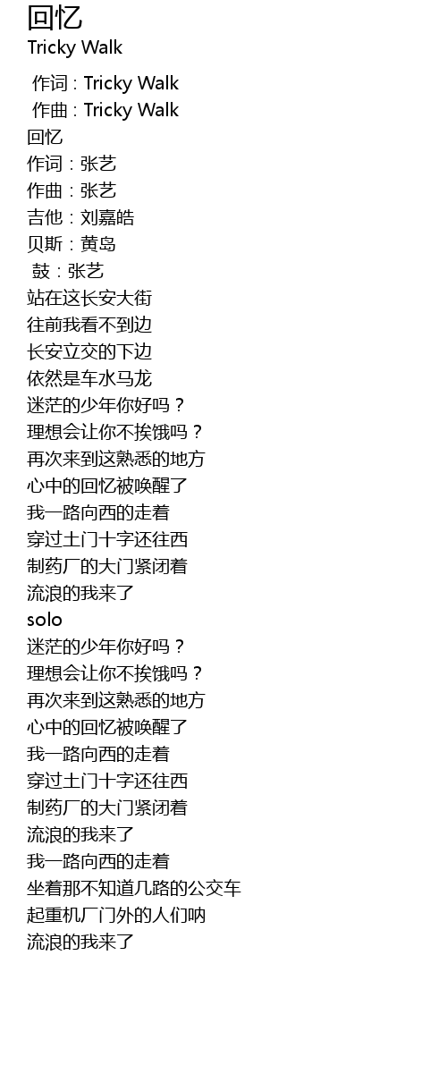 | [00:00.000] | 作词 : Tricky Walk |