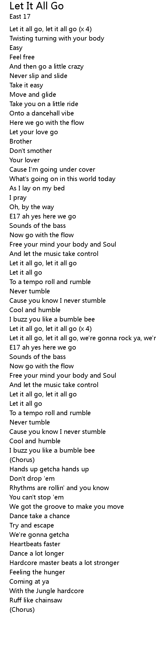 | Let it all go, let it all go (x 4) | |