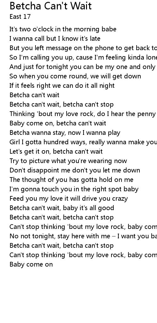 | Can't stop thinking 'bout my love rock, baby come on | |