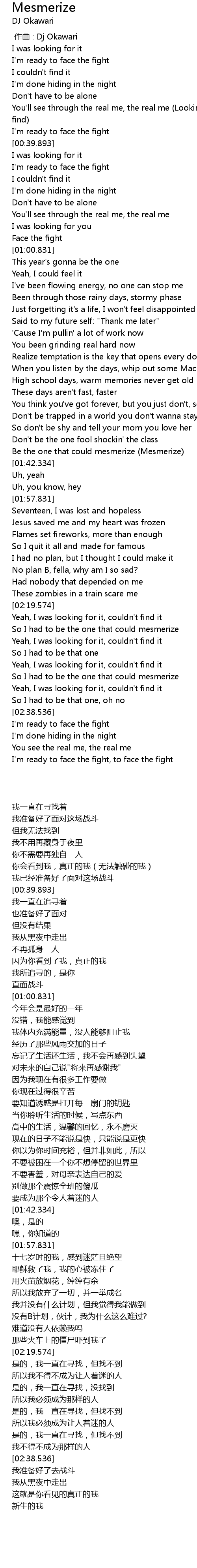 | [01:38.117] | Be the one that could mesmerize Mesmerize |