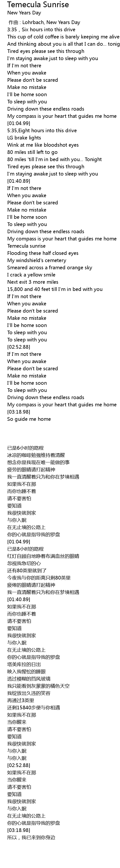 | [00:00.00] | zuò qǔ : Lohrbach, New Years Day |