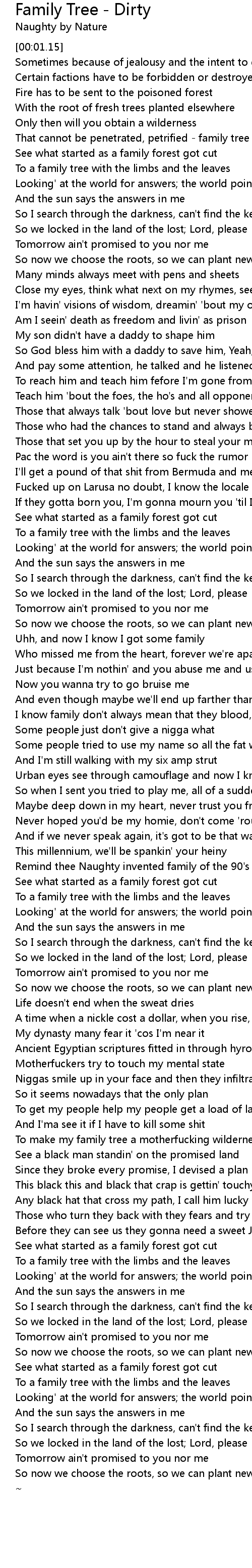 To make my family tree a motherfucking wilderness |