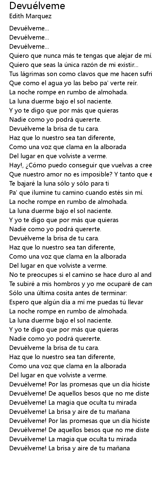 | Devue lveme la brisa de tu cara. | |
