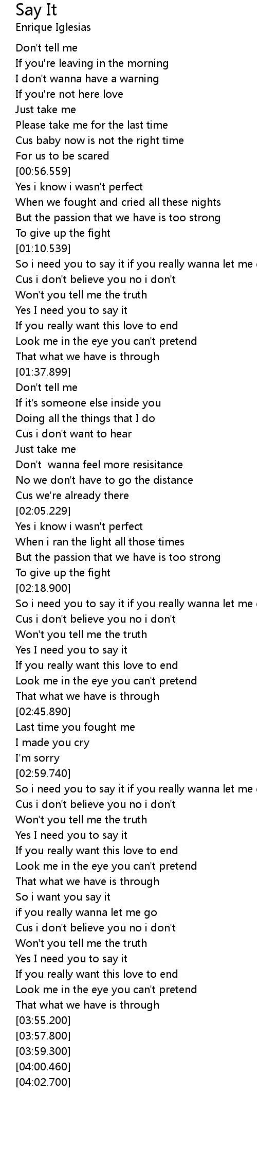 | [02:19.890] | So i need you to say it if you really wanna let me go |