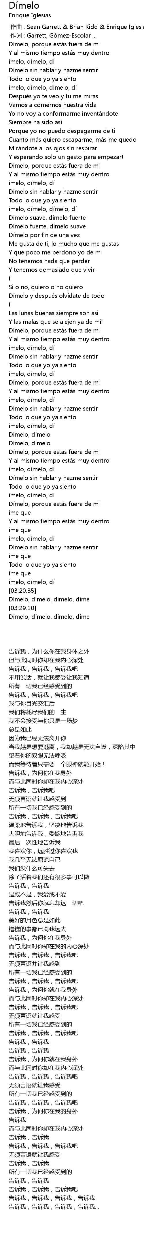 | [03:30.54] | Dí melo, dí melo, dí melo, dí me |