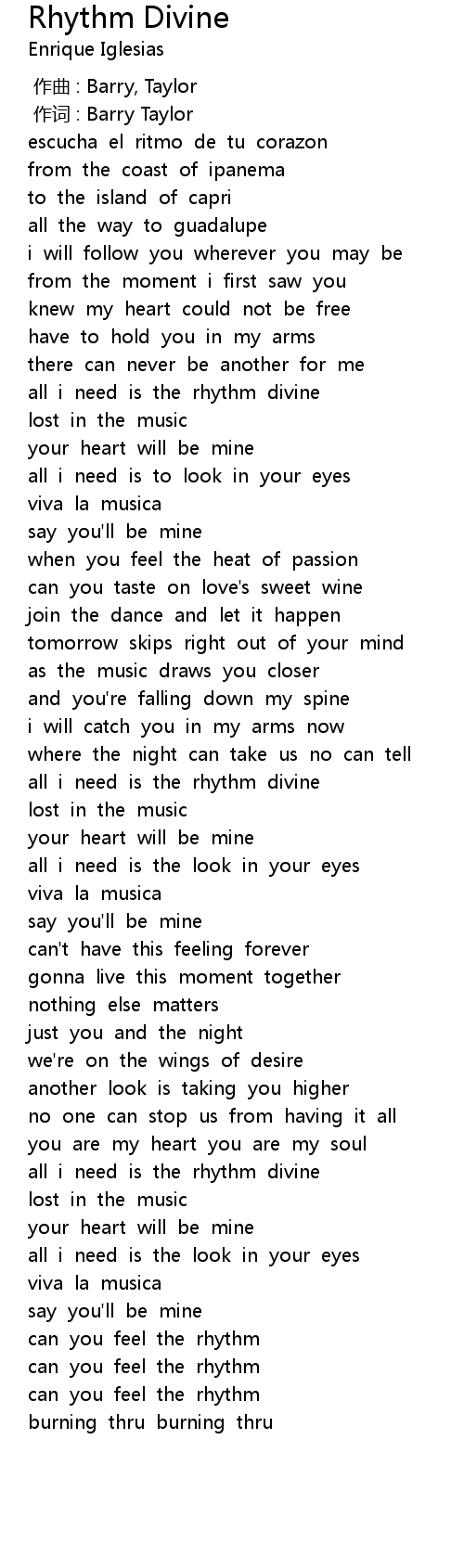 | [00:42.99] | all i need is the rhythm divine |