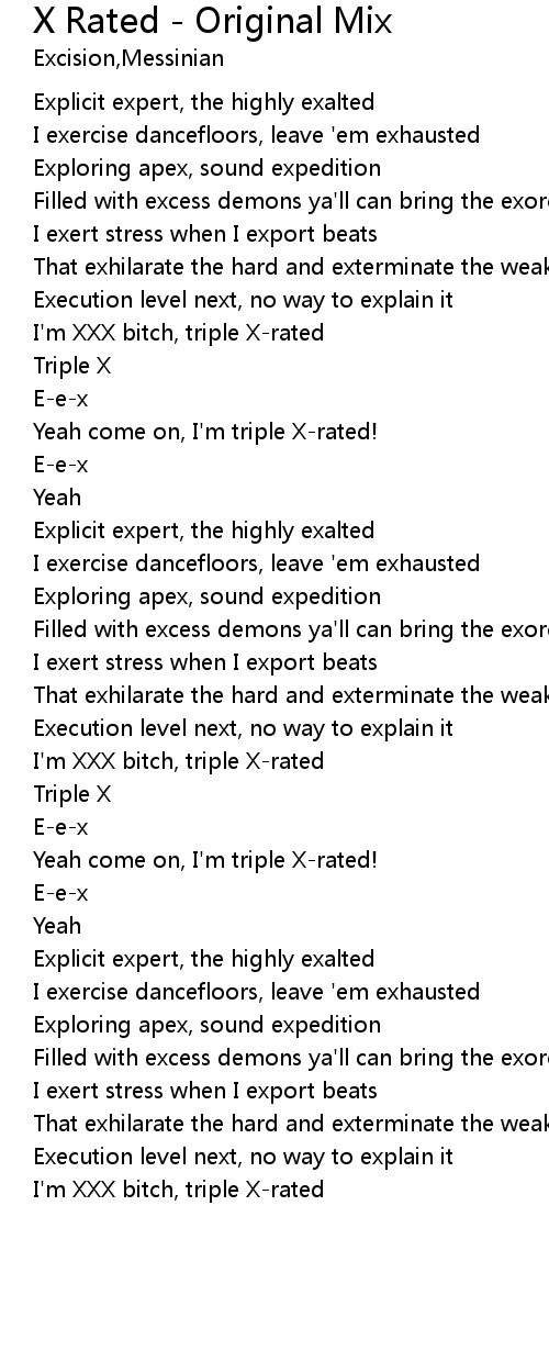 | [02:26.89] | I'm XXX bitch, triple X-rated |
