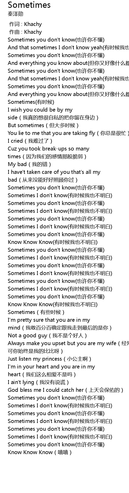 | [00:46.448] | Sometimes you don' t know yě xǔ nǐ bù dǒng |