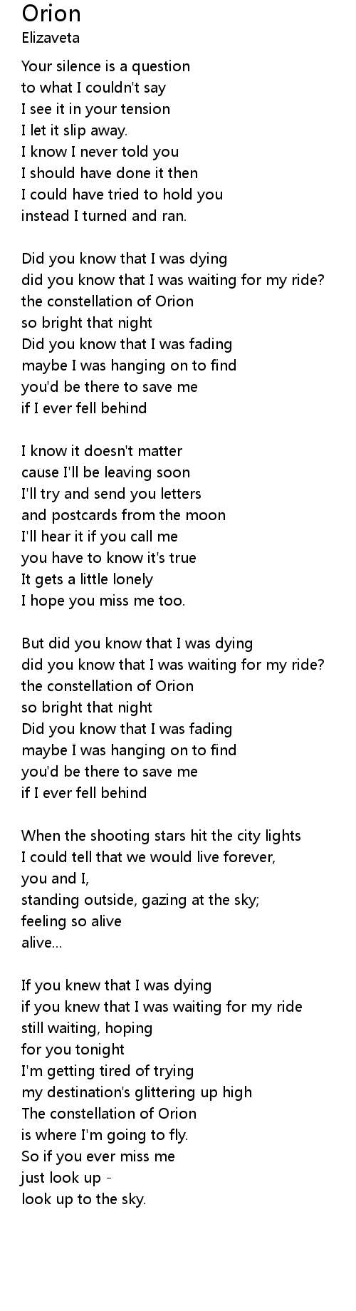If you knew that I was dying |