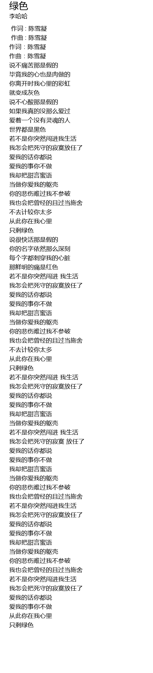 | [04:41.28] | zhǐ shèng lǜ sè |