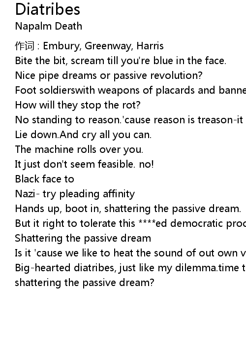 | Big-hearted diatribes, just like my dilemma.time to return compliments, shattering the passive dream? |