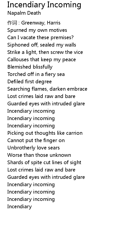| 歌曲 | Incendiary Incoming |
