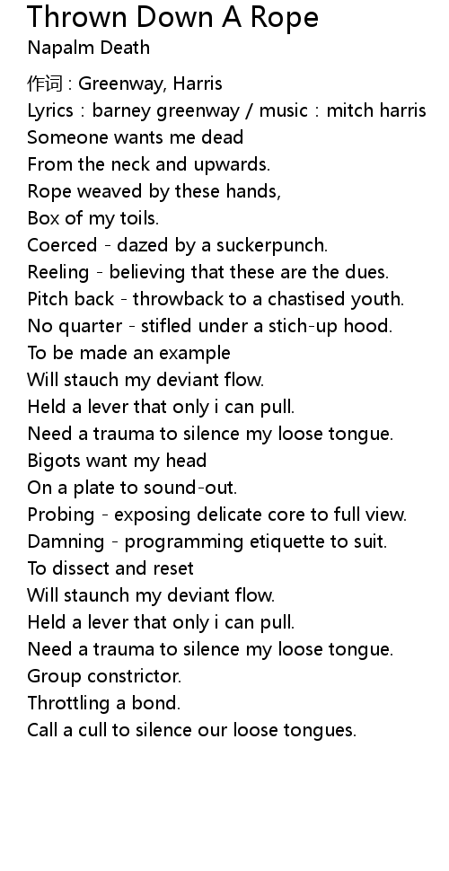 | 歌曲 | Thrown Down A Rope |