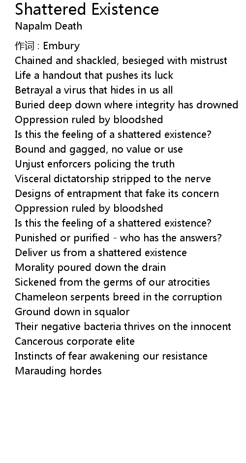| Is this the feeling of a shattered existence? | |