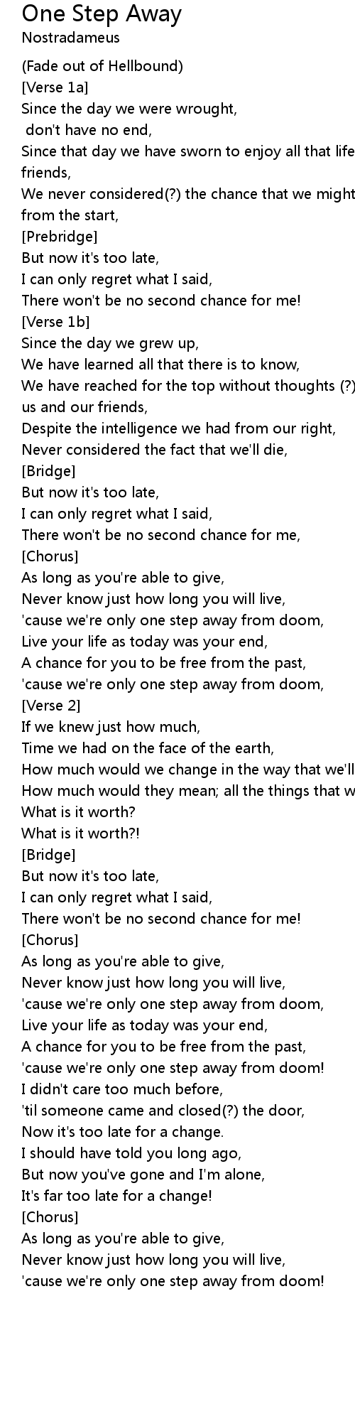 'cause we're only one step away from doom! |