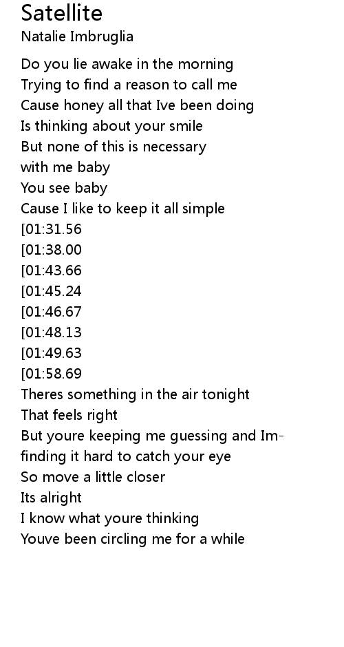 | [02:17.00][01:31.56][00:41.67] | Cause you are my Satellite |