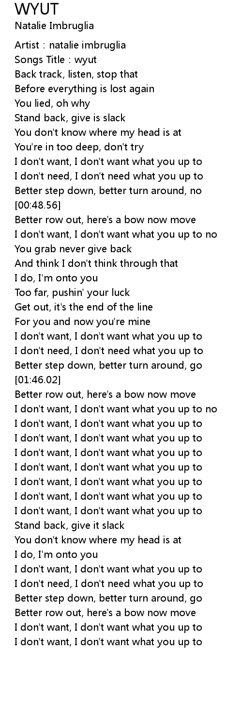 | [02:50.48] | I don't need, I don't need what you up to |