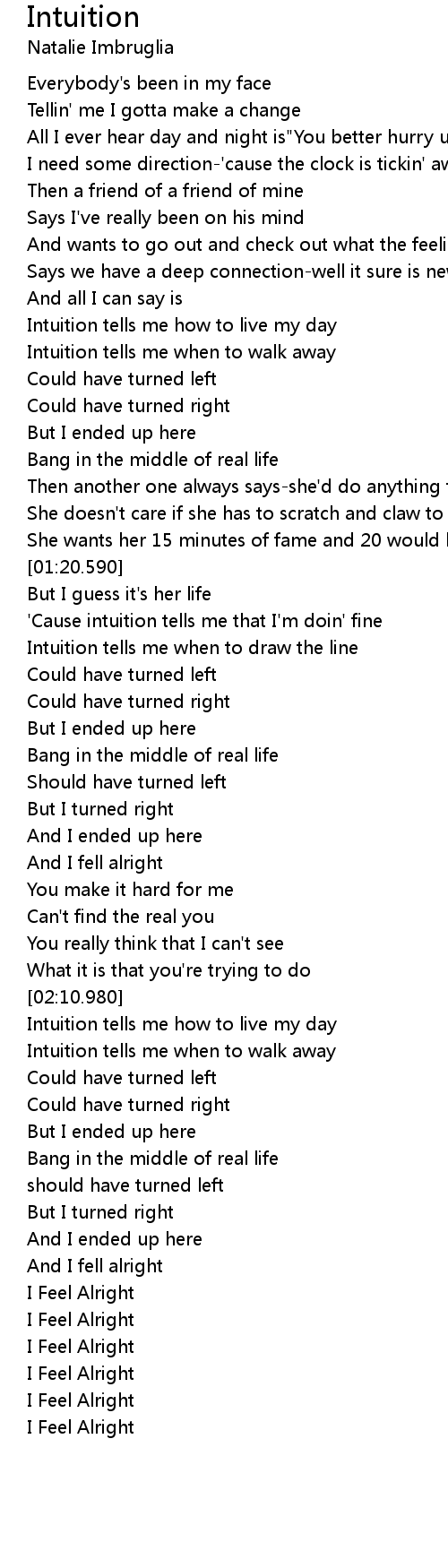 'Cause intuition tells me that I'm doin' fine |
