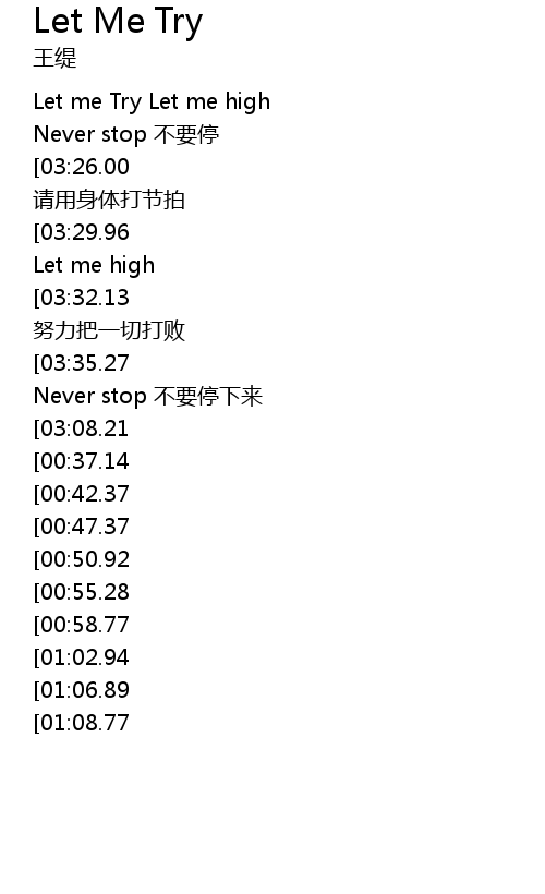 | [03:46.74][03:29.96][02:50.42][02:34.39][01:30.34][01:14.60][00:22.50] | Let me Try Let me high |