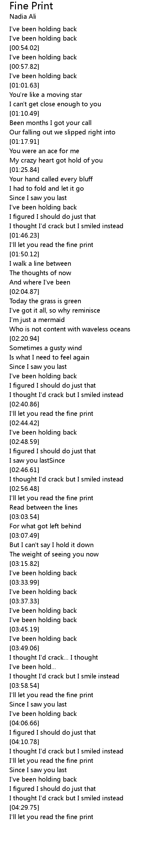 | [01:42.30] | I thought I'd crack but I smiled instead |