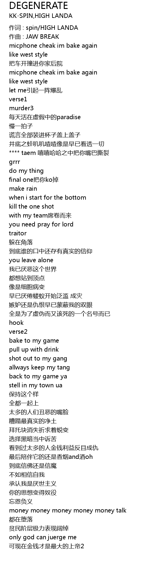 | 歌曲 | DEGENERATE |