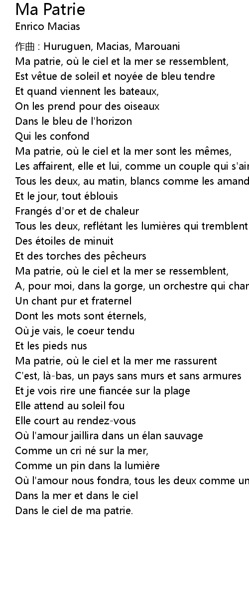 | 歌曲 | Ma Patrie |