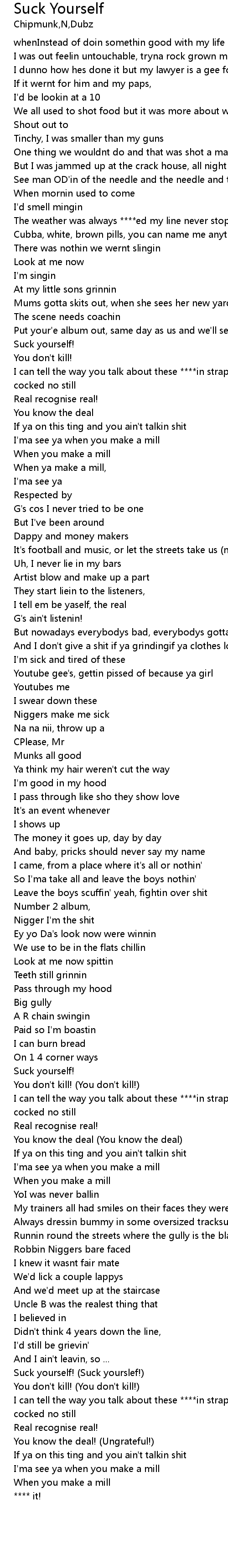 | Suck yourself! (Suck yourslef!) | |