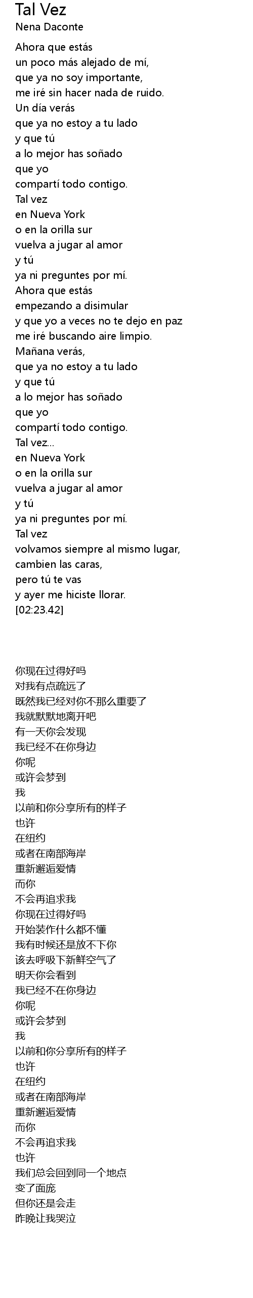 | [02:06.00] | Tal vez |