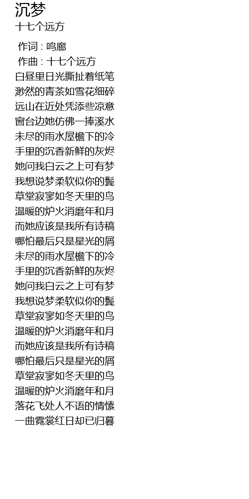 | [03:01.17] | cǎo táng jì liáo rú dōng tiān lǐ de niǎo |
