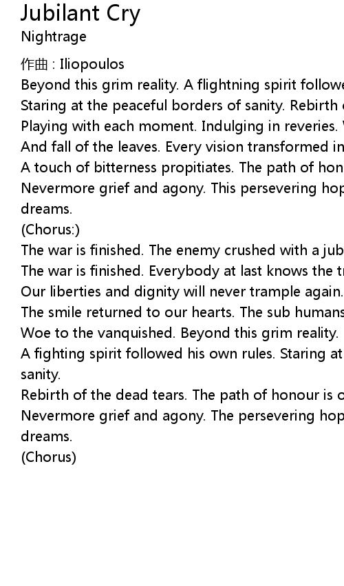 | 歌曲 | Jubilant Cry |