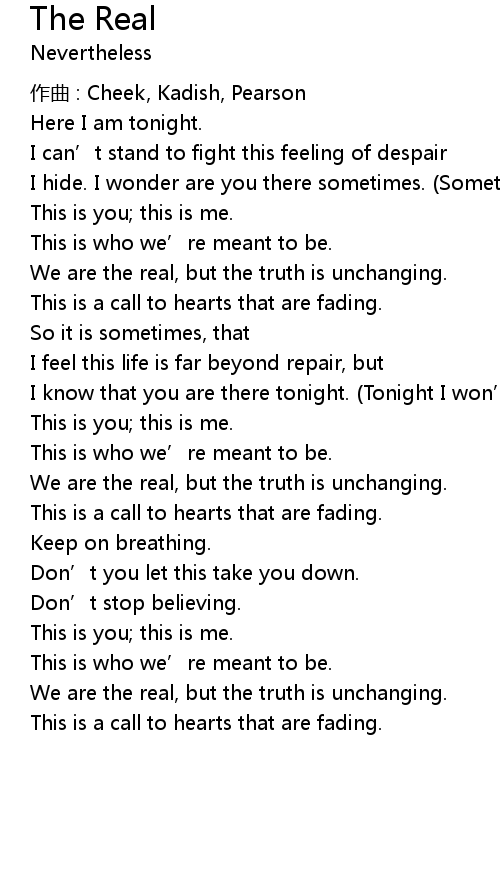 | I know that you are there tonight. Tonight I won' t give up. | |