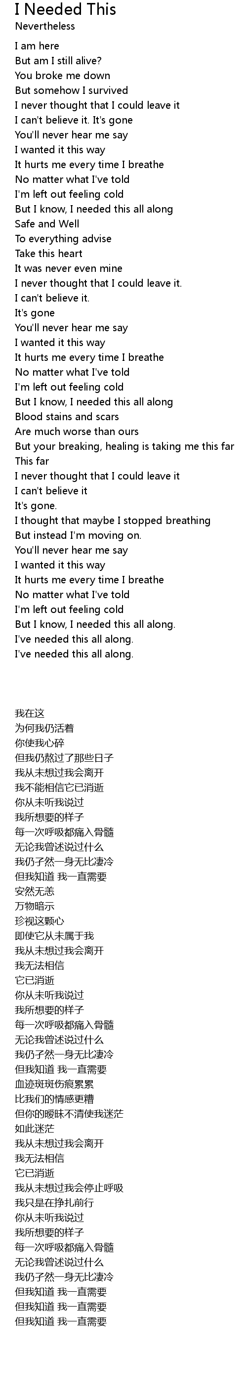 But I know, I needed this all along |