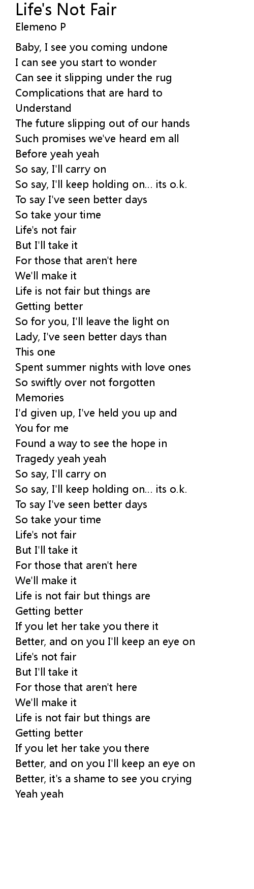 | 歌曲 | Life's Not Fair |