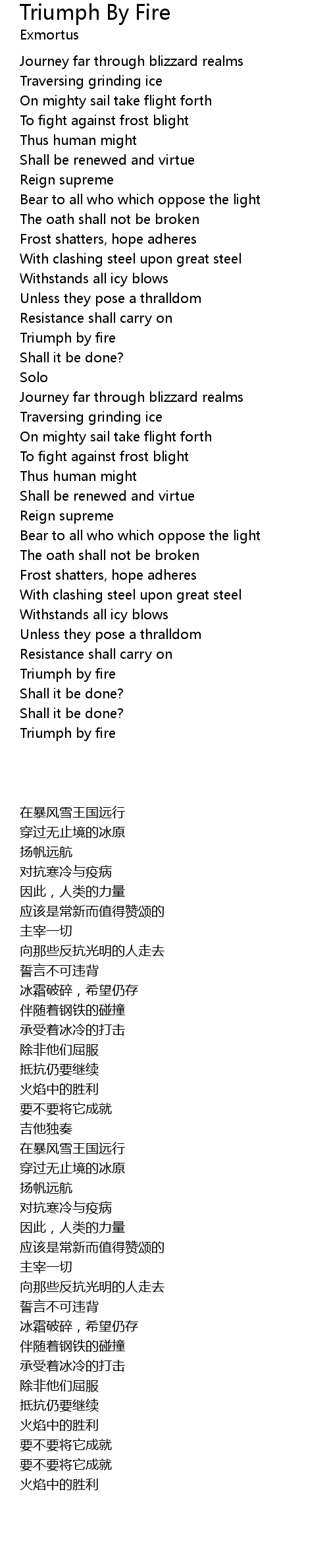 Triumph by fire |