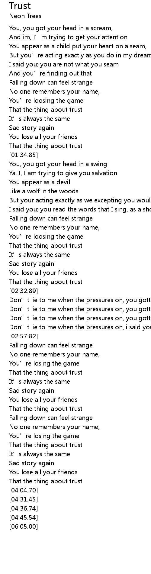 | [02:48.12] | Don’t lie to me when the pressures on, you gotta have trust |