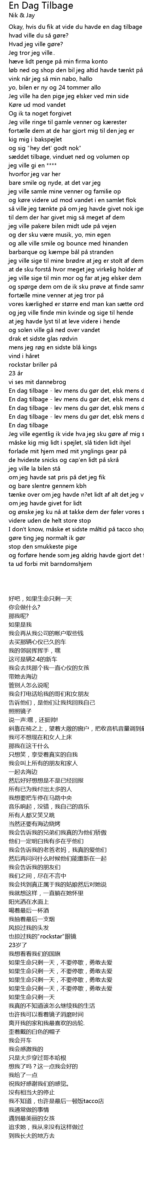 | 歌曲 | En Dag Tilbage |