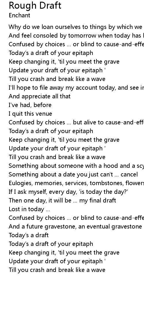 Today's a draft of your epitaph |