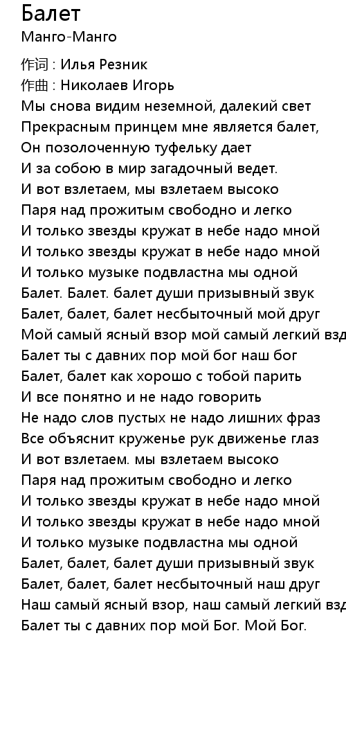 Балет 歌词