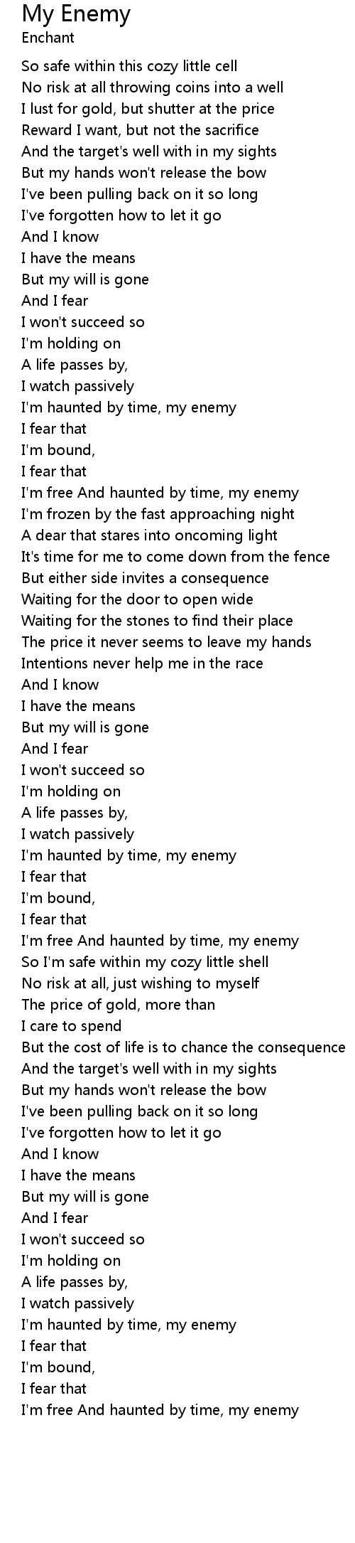 | I'm haunted by time, my enemy | |