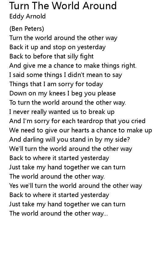 Turn the world around the other way |