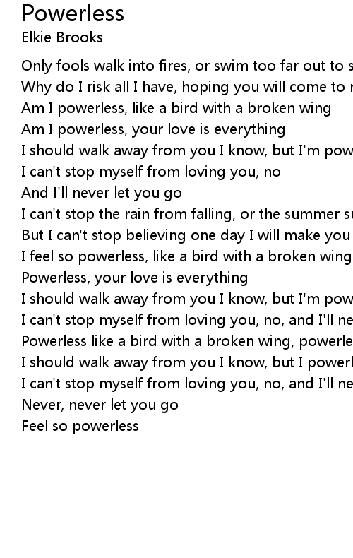 Powerless like a bird with a broken wing, powerless your love is everything |