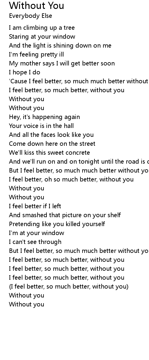 I feel better, so much better, without you |