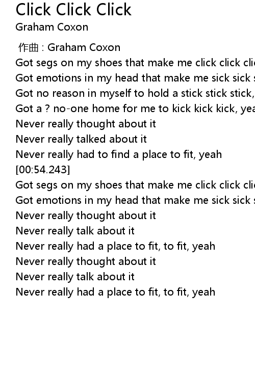 | [00:59.912] | Got segs on my shoes that make me click click click, yeah |